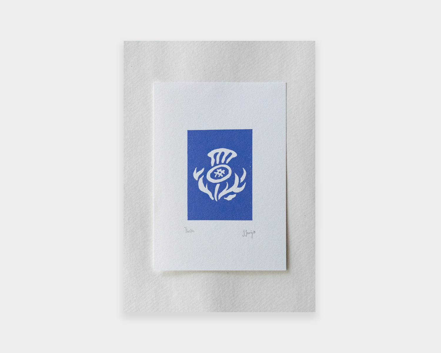 Carved, inked and printed by hand, these prints are bold & graphic. The irregular edges and variations in print make each one unique.